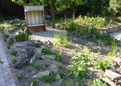 wird naturnah, möglichst ohne Betonfundamente, aus regionalen oder vorhandenen Baustoffen erstellt, dazu werden vorwiegend heimische Pflanzen eingesetzt. Im naturnahen Gartenbau verwende ich gerne regional anliegende Natursteine oder noch lieber alte vorhandene Bauelemente, weil wir uns so, lange Transportwege sparen, damit keine Kinderarbeit ohne Sicherheitskleidung unterstützen und wir die Ressourcen schonen, mit anderen Worten fair und nachhaltig arbeiten.