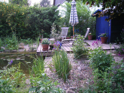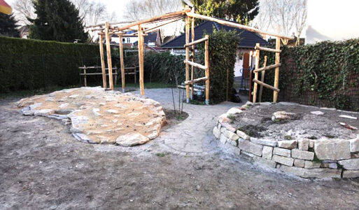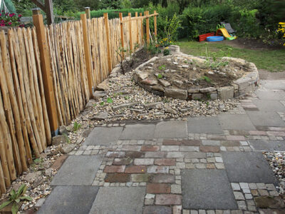 wird naturnah, aus heimischen Hölzern erstellt. Heimische Hölzer wie Eiche, europäische Lärche und Esskastanie brauchen an sich keine Imprägnierung im naturnahen Garten, sie halten bei technisch gut ausgeführter Bauweise auch mind. 15 bis 25 Jahre.