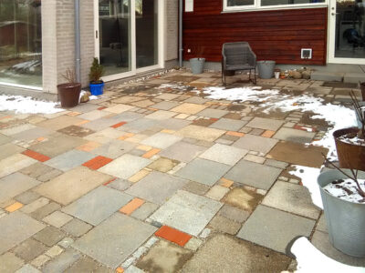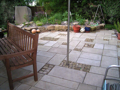 erfolgt bei mir vorwiegend aus Stein, da Holz feucht oft sehr rutschig wird. Die Oberfläche kann dabei sehr unterschiedlich aussehen. Je nachdem welches Material vorliegt oder gewünscht wird. Die Bauart wird in Plattenwege und Pflasterflächen beschrieben. Die Beispiele zeigen hier die unterschiedlichsten Materialien zu regelmäßigen Mustern oder wild kombiniert: